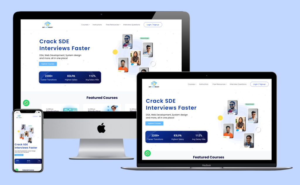 We recently partnered with Get SDE Ready to enhance their digital presence, focusing on a robust website design and specialized SEO strategy. The new, conversion-focused website design provides a clean, intuitive platform for aspiring Software Development Engineers (SDEs), ensuring seamless navigation through courses and resources.